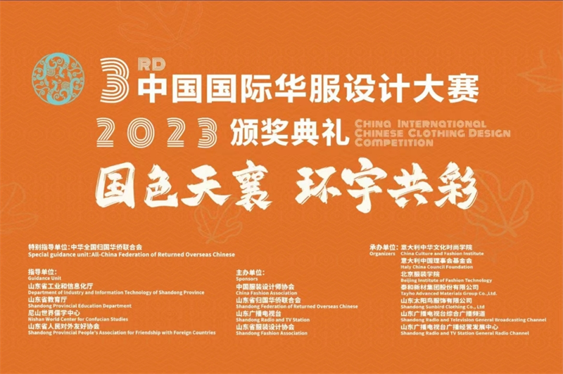 中國國際華服設(shè)計(jì)大賽由中華全國歸國華僑聯(lián)合會指導(dǎo),山東省工業(yè)和信息化廳、山東省教育廳、尼山世界儒學(xué)中心、山東省人民對外友好協(xié)會共同指導(dǎo),中國服裝設(shè)計(jì)師協(xié)會、山東省歸國華僑聯(lián)合會、山東廣播電視臺、山東省服裝設(shè)計(jì)協(xié)會共同主辦,意大利中華文化時尚學(xué)院、意大利中國理事會基金會、北京服裝學(xué)院、山東省太陽鳥服飾有限公司、泰和新材集團(tuán)股份有限公司等共同承辦。