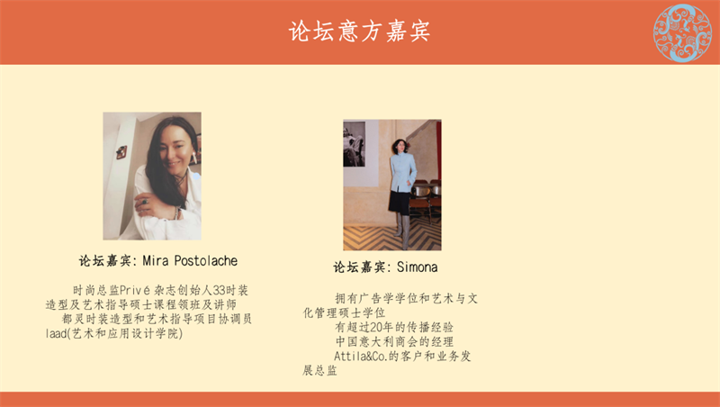 意大利中國理事會基金會主席馬里奧·博塞利(Mario Boselli)、意大利工業(yè)設(shè)計(jì)協(xié)會主席盧齊亞諾·佳林貝蒂(Luciano Galimberti)、中國駐意大利總領(lǐng)館領(lǐng)事姚良軍、米蘭理工大學(xué)教學(xué)主任阿爾巴·卡佩利埃里(Alba Cappellieri )、意大利著名策展人亦可·米利爾(Ico Migliore)、時尚總監(jiān)Prive雜志創(chuàng)始人米拉·波斯托拉(Mira Postolache)、意大利中國理事會基金會秘書長馬克·貝廷(Marco Bettin);北京服裝學(xué)院黨委書記周志軍,中國服裝設(shè)計(jì)師協(xié)會執(zhí)行主席楊健,副主席黃萍、朱少芳、吳洪以及產(chǎn)業(yè)中心總監(jiān)李菲、項(xiàng)目主管蘇文婷、國際部項(xiàng)目經(jīng)理李思俁等出席活動。