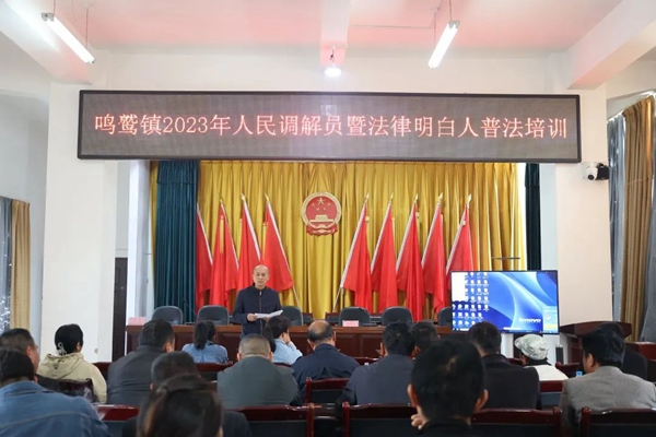 鳴鷲鎮(zhèn)結(jié)合自身實(shí)際,建立了“三官一律”開(kāi)展實(shí)訓(xùn)、指導(dǎo)實(shí)踐、組織實(shí)操的“四聯(lián)三實(shí)”培養(yǎng)機(jī)制。邀請(qǐng)“三官一律”對(duì)全鎮(zhèn)村組干部、網(wǎng)格員、“法律明白人”等人員開(kāi)展矛盾糾紛調(diào)處、法律法規(guī)解讀等專業(yè)集中培訓(xùn)12次,全方位提升基層社會(huì)治理隊(duì)伍的業(yè)務(wù)素養(yǎng)、專業(yè)技能和調(diào)解工作水平,努力打造一支“站起來(lái)能說(shuō)、坐下來(lái)能寫(xiě)、走出去能干”的全能型基層政法人才,助力基層社會(huì)治理法治化,同時(shí)培育一批“群眾身邊帶不走”的普法隊(duì)伍?!叭僖宦伞碧峁┓深檰?wèn)服務(wù)、案例指導(dǎo)、現(xiàn)場(chǎng)參與調(diào)解,幫助健全人民調(diào)解組織和基層群眾自主協(xié)商解決糾紛機(jī)制,全鎮(zhèn)建立鎮(zhèn)級(jí)調(diào)解委員會(huì)、村級(jí)調(diào)解委員會(huì)、婚戀調(diào)解委員會(huì)、交通安全調(diào)解會(huì)等調(diào)解組織共9個(gè),充實(shí)調(diào)解人員110人,助力基層提升法治化水平。