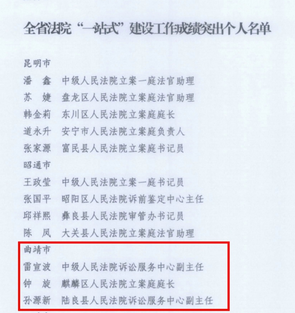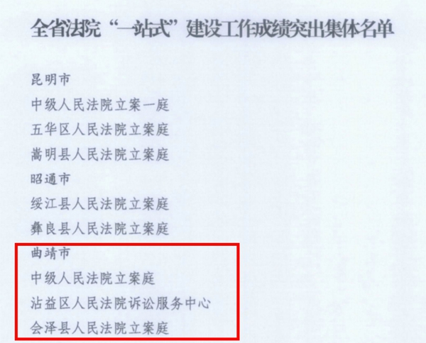 近日,云南省高級人民法院表彰了一批在“一站式”建設(shè)工作中成績突出的集體和個人,曲靖法院多家“一站式”集體和個人上榜。