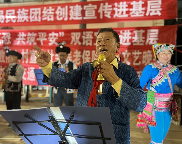 2016年,張有華受邀擔任曼來鎮(zhèn)百姓宣教隊負責人,他把“532樂隊”也納入宣教隊。從此,張有華的宣講活動從“獨角戲”變成了“民族歌舞+花燈說唱+政策宣講”的模式,內容更加豐富,表演更加精彩,受到了群眾歡迎。隊員們白天務農,晚上排練節(jié)目,除了在曼來鎮(zhèn)演出,宣教隊還經常被邀請到其他鄉(xiāng)鎮(zhèn)和相鄰縣區(qū)宣講表演。