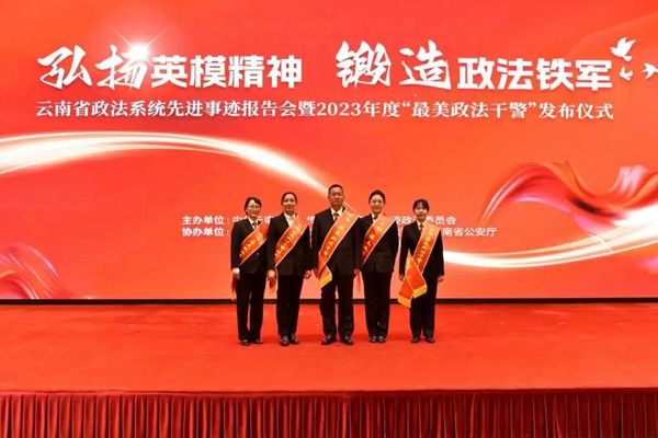 1月4日,由云南省委宣傳部、省委政法委聯(lián)合舉行的云南省政法系統(tǒng)先進事跡報告會暨2023年度“最美政法干警”發(fā)布儀式在昆明舉行。省委常委、省委政法委書記楊亞林,省人民政府副省長、省公安廳廳長岳修虎,省人民檢察院黨組書記、檢察長王光輝,省司法廳黨委書記、廳長茶忠旺,省級政法機關(guān)相關(guān)領(lǐng)導及干警代表出席發(fā)布儀式。會前楊亞林會見了獲獎代表,省高級人民法院黨組副書記、分管日常工作的副院長向凱參加會見活動。
