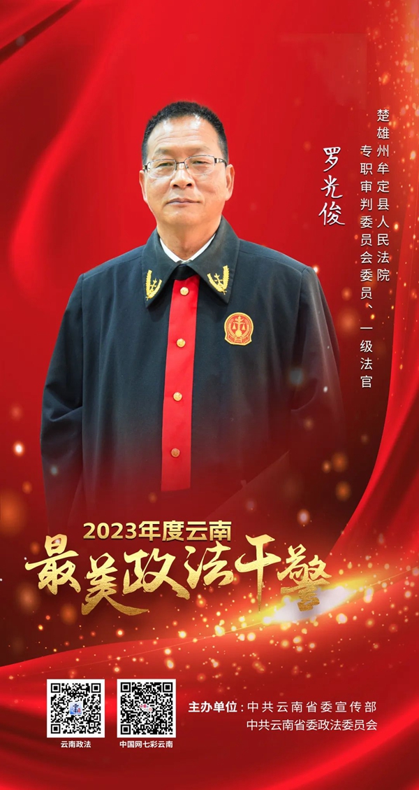 羅光俊,男,漢族,1972年3月出生,中共黨員,現(xiàn)任楚雄州牟定縣人民法院專職審判委員會委員、一級法官。自參加工作以來,他一直扎根基層,只要一有時間就研讀法律書籍、總結(jié)審判經(jīng)驗和調(diào)解方法。同事們遇到問題都喜歡請教他,拉他一起組合議庭,稱呼他為“鐵人羅鍋”,并評價道:“和老羅一起辦案很省心,老羅就是一本移動的法律書籍?!彼珜懙?0多篇調(diào)研案例分析文章被多家省級媒體采用。他接手最難的“權(quán)屬類案件團隊”和破產(chǎn)案時毫無怨言,但遇到當事人托關(guān)系打招呼時卻“火冒三丈”,并對家人提出“不準為案件打招呼、不準接受送禮、不準打聽案情”的“三不準”要求。28年來,他審理了3000余件案件,無一件關(guān)系案、人情案、金錢案,也沒有一件因裁判不公被投訴、被舉報。2023年,他先后被評為牟定縣第一屆“道德模范”,他的家庭被選樹為省、州、縣三級清廉家庭。
