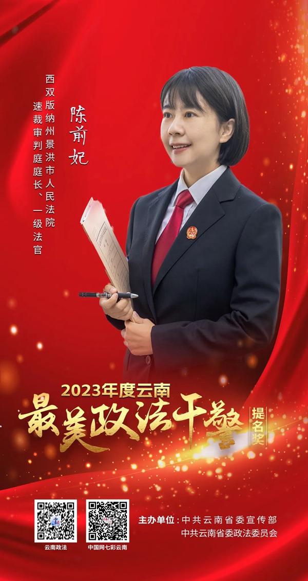 陳前妃,女,漢族,1990年8月出生,中共黨員,現(xiàn)任西雙版納州景洪市人民法院速裁審判庭庭長、一級法官。她所在的速裁庭分流了全院近70%的民商事案件。從2019年至今,她受理案件3446件,審結(jié)3323件,調(diào)撤1031件,收結(jié)案數(shù)在全院中名列前茅,無一起錯案和超期案件。她推進速裁快審機制改革,庭審時集中一次審理30至50宗案件,跑出了速裁庭的“加速度”。她啃下了房地產(chǎn)領(lǐng)域糾紛的“硬骨頭”,處理了某樓盤800多名業(yè)主起訴開發(fā)商逾期辦理不動產(chǎn)權(quán)證的案件。她用心服務(wù)群眾,花費兩小時全程用電腦打字與70多歲的老人溝通,利用網(wǎng)絡(luò)平臺審結(jié)案件230余件,其中一起商品房預售合同糾紛案件支付的400余萬元款項在網(wǎng)上完成。近年來,她被云南省高級人民法院評為“全省法院一站式建設(shè)調(diào)解能手”,被最高人民法院授予“2020至2021年度全國法院辦案標兵”稱號。