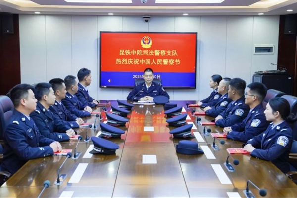 1月10日,昆明市中級人民法院組織開展人民警察節(jié)系列慶祝活動。上午,昆明中院全體司法警察威嚴肅立、精神飽滿,面對警旗莊嚴宣誓,在鏗鏘有力的誓詞聲中,堅定投身司法警務工作、服務法院審判事業(yè)的理想信念。法警們觀看了中國人民警察警旗授旗儀式專題教育片,并對過去一年的警務工作進行總結回顧。在隨后召開的全市法院慶?!爸袊嗣窬旃?jié)”暨警務安全工作會上,昆明中院對2023年全市“實用管用”新型警務保障能力訓練先進集體和先進個人進行了通報表揚。