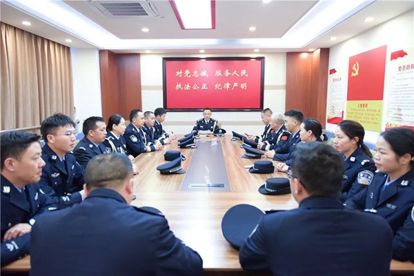 在第四個中國人民警察節(jié)到來之際,文山壯族苗族自治州兩級法院組織全體司法警察、輔警開展系列慶?;顒印K痉ň靷兩碇Y服,輔警著常服,精神抖擻、整齊列隊,面向警旗用洪亮的歌聲高唱國歌,隨后在領誓人的帶領下,全體人員重溫了入警誓詞。部分法院組織法警召開了座談會,集中學習了人民警察法及相關文件精神,從警多年、經(jīng)驗豐富的老黨員、老法警向年輕干警們分享自己的從警經(jīng)歷,勉勵年輕干警定目標并為之努力奮斗,建議年輕人要干好本職工作、份內(nèi)之事,善于從小格局中跳出來,學會從全局高度思考問題。