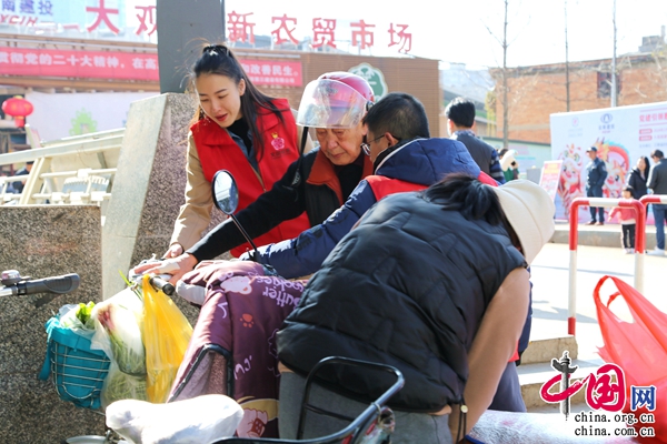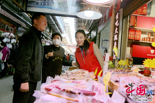 春節(jié)將至,年味愈來(lái)愈濃,各家各戶忙于籌備年貨,昆明市五華區(qū)大觀篆新農(nóng)貿(mào)市場(chǎng)也迎來(lái)消費(fèi)高峰期。為滿足消費(fèi)者多樣的購(gòu)物需求,五華區(qū)組織黨員志愿者到篆新農(nóng)貿(mào)市場(chǎng)開(kāi)展貼心志愿服務(wù),幫助市場(chǎng)管理方維護(hù)秩序,會(huì)同民警開(kāi)展安全檢查,協(xié)助商戶準(zhǔn)備貨品,引導(dǎo)游客群眾找到心儀商品,以切實(shí)行動(dòng)傳遞昆明“溫度”,以滿滿煙火氣、濃濃為民情迎接龍年春節(jié)。(楊雯/文 羅云紫/圖)