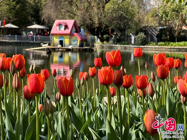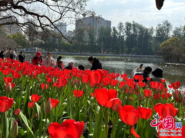 郁金香是春日的花信,也是盛世繁華的象征,受到大家的喜愛。每年春節(jié)期間,位于昆明市五華區(qū)的翠湖公園都會(huì)舉辦郁金香花展,色彩繽紛的郁金香在陽光下匯聚成花海,藍(lán)天、碧水、紅嘴鷗為背景的映襯下,“翠湖”這塊綠寶石散發(fā)著別具一格的魅力。