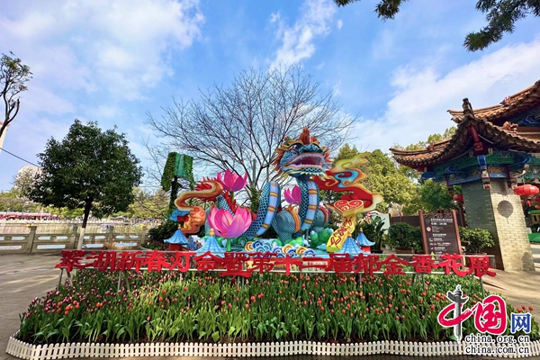 2024年春節(jié),步入翠湖公園,數(shù)以萬計(jì)的鮮花匯聚成花海、靈動(dòng)璀璨的燈光造型營造出歡樂喜慶的氛圍,豐富多彩的節(jié)目迎接著您的到來。游客朋友們可打卡拍照,共同記錄下熱烈蓬勃的翠湖春日浪漫。(楊雯)