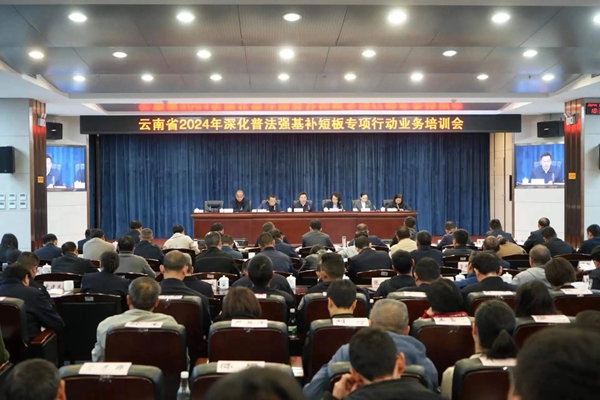 為貫徹落實(shí)云南省委、省政府關(guān)于深化普法強(qiáng)基補(bǔ)短板專(zhuān)項(xiàng)行動(dòng)部署要求,開(kāi)展專(zhuān)項(xiàng)普法業(yè)務(wù)培訓(xùn),安排2024年重點(diǎn)工作任務(wù),3月1日,在昆明召開(kāi)全省2024年深化普法強(qiáng)基補(bǔ)短板專(zhuān)項(xiàng)行動(dòng)業(yè)務(wù)培訓(xùn)會(huì)。省委政法委副書(shū)記、省專(zhuān)項(xiàng)普法辦副主任董國(guó)權(quán)主持會(huì)議并講話。省文明辦專(zhuān)職副主任、省專(zhuān)項(xiàng)普法辦副主任鄭義,省司法廳副廳長(zhǎng)、省專(zhuān)項(xiàng)普法辦副主任高兵就本系統(tǒng)深化普法強(qiáng)基補(bǔ)短板相關(guān)工作進(jìn)行部署安排。