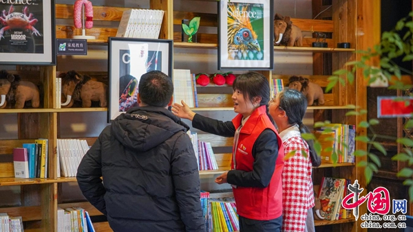“大家好,歡迎來到尹哥書房。”“讓生命科學(xué)流行起來,尹哥書房是以科學(xué)書籍為主的公益科普書房,是華大集團(tuán)CEO尹燁與云南柏聯(lián)和順旅游文化發(fā)展有限公司聯(lián)合共建的……”春節(jié)期間,文旅志愿者王丁丁正耐心細(xì)致地講解尹哥書房。