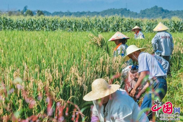 2023年9月的和順,秋高氣爽,稻花飄香,雨洲亭畔的稻田里,人們揮汗如雨忙著稻谷的收割、打谷、裝袋、測產(chǎn),共同見證、參與、分享于2023年5月21日騰沖科學(xué)家論壇生命科學(xué)科普與民生普惠和順活動上種下的超級物種“多年生稻”。多年生稻是云南大學(xué)胡鳳益教授團(tuán)隊以非洲長雄野生稻為父本、亞洲栽培稻為母本,通過種間遠(yuǎn)緣雜交、結(jié)合分子標(biāo)記輔助選擇,經(jīng)過20多年探索培育出來的,實現(xiàn)一次播種、多年收獲的顛覆性變革,極大地節(jié)省農(nóng)民在種子購買、犁田、插秧等方面的投入,被《科學(xué)》雜志評選為2022年度全球十大科學(xué)突破之一,成為中國乃至全球農(nóng)業(yè)科技領(lǐng)域閃耀的創(chuàng)新明星。