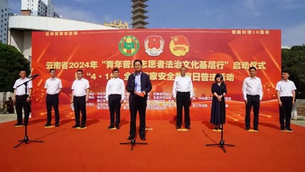 4月15日,云南省2024年“青年普法志愿者法治文化基層行”啟動(dòng)儀式暨“4.15”全民國(guó)家安全教育日普法活動(dòng)在澄江市舉行。