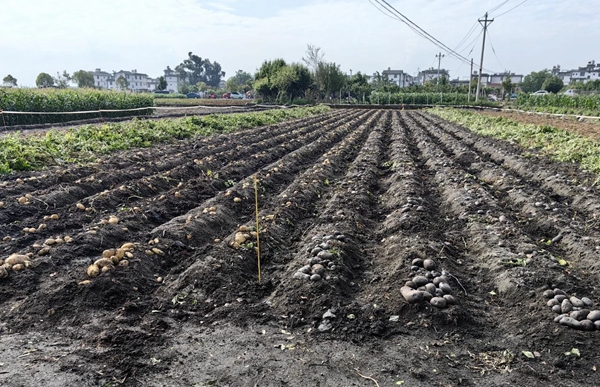 在田間測(cè)產(chǎn)現(xiàn)場(chǎng),馬鈴薯新品種“滇彩薯103”折合平均畝產(chǎn)4303千克,商品薯率98.11%,按當(dāng)日地頭收購(gòu)價(jià)測(cè)算,畝產(chǎn)值達(dá)10619元。大理市人民政府副市長(zhǎng)趙騰鵬介紹,大理市依托云南省科技廳重大科技專項(xiàng)項(xiàng)目,持續(xù)推進(jìn)馬鈴薯新品種、新技術(shù)等成果落地轉(zhuǎn)化,總結(jié)洱海流域早春馬鈴薯黑膜全覆蓋高效栽培技術(shù)并推廣應(yīng)用,早春馬鈴薯平均畝產(chǎn)達(dá)3噸以上,增產(chǎn)效果明顯。下一步,大理市將持續(xù)開(kāi)展基于多樣化消費(fèi)的馬鈴薯新品種選育及其綠色生產(chǎn)技術(shù)研究示范,推動(dòng)馬鈴薯產(chǎn)業(yè)發(fā)展和市場(chǎng)對(duì)馬鈴薯的多樣化需求,助力洱海流域農(nóng)業(yè)種植結(jié)構(gòu)調(diào)整和農(nóng)業(yè)產(chǎn)業(yè)綠色轉(zhuǎn)型。