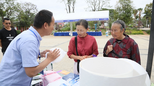 5月28日,在2024年云南省科技活動周主場活動上,60余項創(chuàng)新成果與文山市民朋友見面。通過全景式展示、沉浸式體驗、互動式參與,高原特色農(nóng)業(yè)、綠色能源、生物醫(yī)藥等領(lǐng)域的創(chuàng)新成果,人工智能、警用無人機(jī)、醫(yī)療義診等與人們生活密切相關(guān)的科普活動在廣場上“流動”起來,讓大家近距離觸摸科技、走進(jìn)科技,感受科技的魅力。