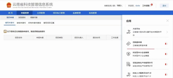 (云南省科技創(chuàng)新券管理系統(tǒng)平臺業(yè)務(wù)辦理頁面)