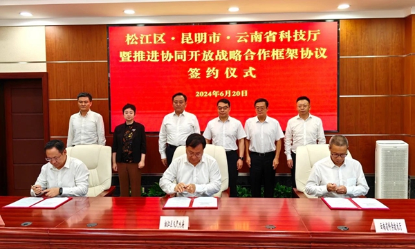 6月20日,為深化東西部科技合作,加強(qiáng)與G60沿線資源優(yōu)勢(shì)鏈接,云南省科學(xué)技術(shù)廳與上海市松江區(qū)人民政府、云南省昆明市人民政府,在上海市松江區(qū)共同簽署推進(jìn)協(xié)同開(kāi)放戰(zhàn)略合作框架協(xié)議。