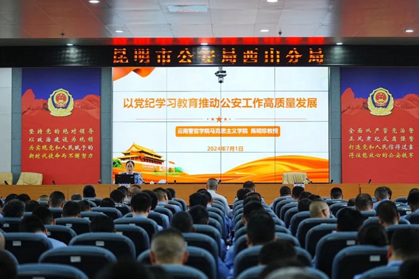 邀請(qǐng)?jiān)颇暇賹W(xué)院馬克思主義學(xué)院院長陳明珍以“以黨紀(jì)學(xué)習(xí)教育推動(dòng)公安工作高質(zhì)量發(fā)展”為題,為全局民警、輔警授課。