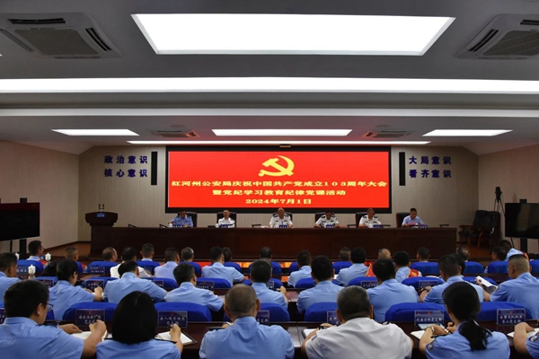 7月1日上午,云南省紅河州公安局舉行慶祝中國(guó)共產(chǎn)黨成立103周年大會(huì)暨黨紀(jì)學(xué)習(xí)教育紀(jì)律黨課活動(dòng)。州人民政府副州長(zhǎng)、州公安局黨委書記、局長(zhǎng)黃碧忠參加會(huì)議并講授黨課。