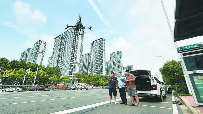 創(chuàng)新大道上,工作人員正在利用無人機搭載傳感器對激光雷達掃描高值區(qū)域開展溯源排查。