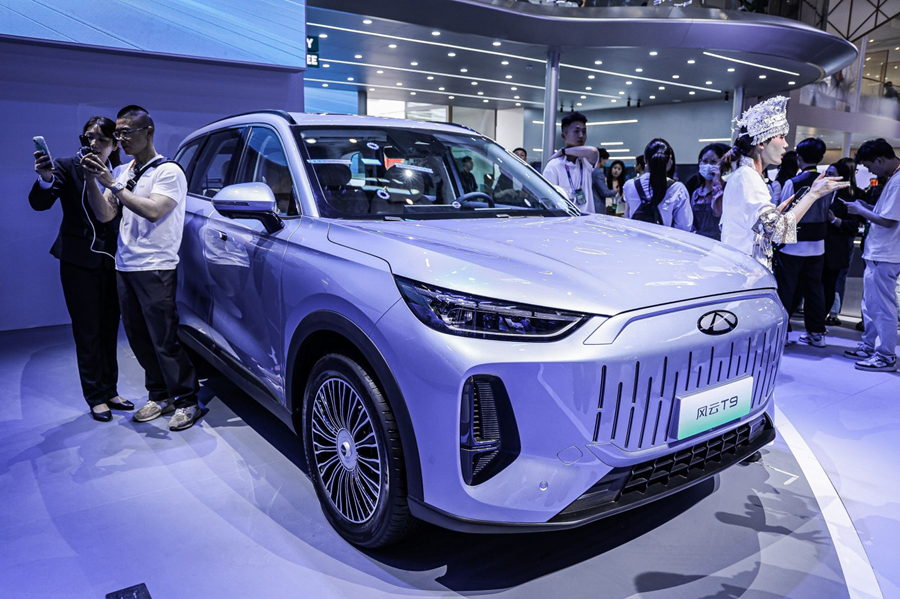 在北京中國國際展覽中心順義館舉行的2024北京車展上,奇瑞汽車展出的新車型風(fēng)云T9。(受訪者供圖)