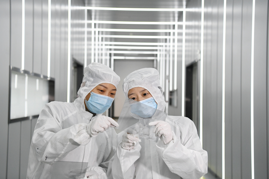 在位于安徽合肥的東超科技工廠,技術(shù)人員在檢查負(fù)折射平板透鏡原材料的品質(zhì)。新華社記者 張端 攝