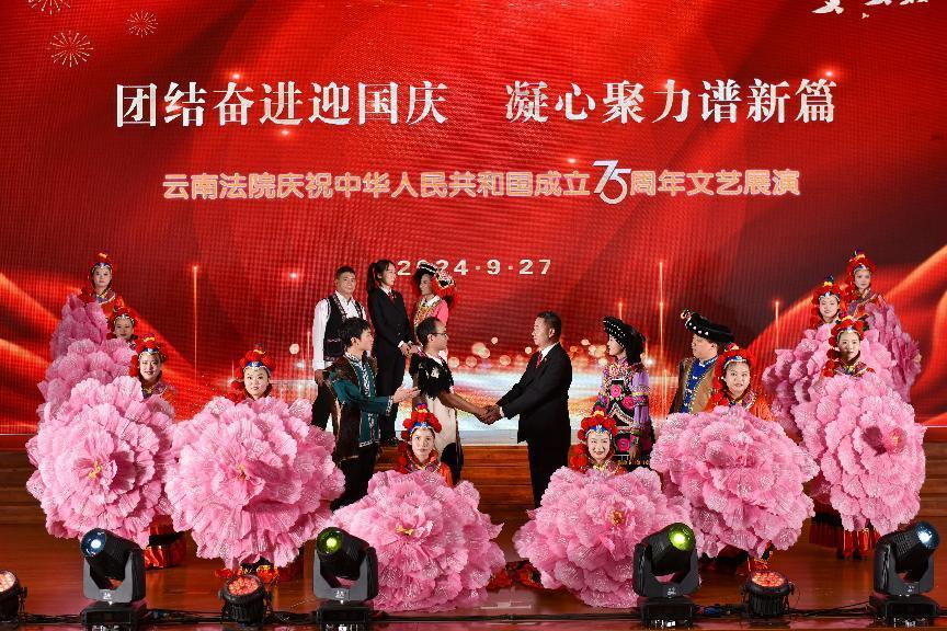 來自云南高院、昆明市中級(jí)人民法院、臨滄市中級(jí)人民法院等8個(gè)中級(jí)法院200余名干警表演了歌曲、舞蹈、舞臺(tái)劇、詩歌朗誦等10個(gè)節(jié)目。文藝展演精彩紛呈,現(xiàn)場(chǎng)掌聲熱烈。全省法院以文藝方式共同回顧偉大祖國的光輝歷程,展望偉大祖國的美好未來,充分展現(xiàn)了全省法院在服務(wù)保障中國式現(xiàn)代化云南篇章、捍衛(wèi)公平正義、司法為民的初心和使命,表達(dá)云南法院人的愛國之志、崇法之心、為民之情。