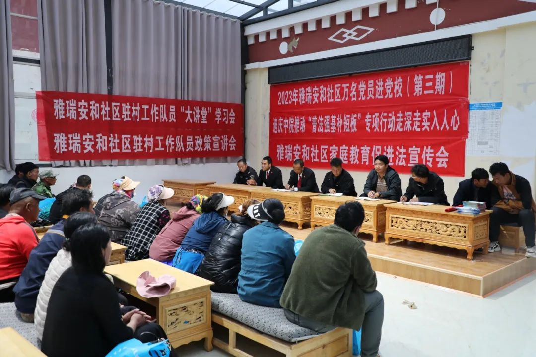(迪慶藏族自治州中級人民法院到社區(qū)開展“雙語”普法宣講。曹琳/攝)
