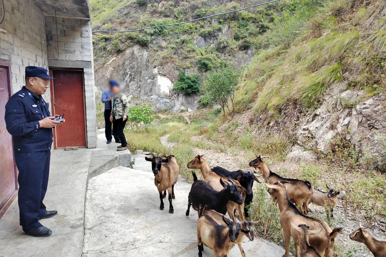 通過無人機查看周邊,民警一點點縮小搜尋范圍,半小時后,終于發(fā)現(xiàn)了羊群的蹤跡,經張女士確認,正是其丟失的羊群。