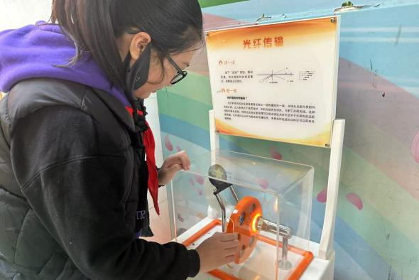 活動(dòng)現(xiàn)場(chǎng)熱鬧非凡,大家懷揣著好奇心和探索欲,在雅各布天梯展具前觀察高壓弧光放電現(xiàn)象、轉(zhuǎn)動(dòng)不同的碼輪轉(zhuǎn)盤(pán)嘗試解除密碼鎖、通過(guò)隊(duì)列行進(jìn)展具深刻理解人眼的視覺(jué)暫留現(xiàn)象和機(jī)械的連續(xù)運(yùn)動(dòng)、一同研讀說(shuō)明牌了解各項(xiàng)展具所應(yīng)用的原理……通過(guò)一套套妙趣橫生的科普展具,晦澀難懂的知識(shí)變得通俗有趣,書(shū)本上的知識(shí)變得觸手可及,大家在互動(dòng)中探索奧秘、增長(zhǎng)知識(shí)。