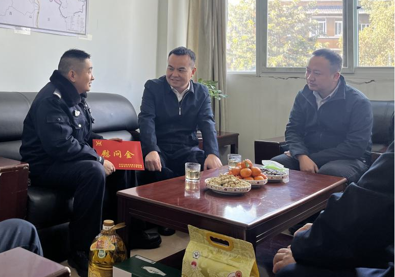 在安寧市公安局羅白派出所,楊政昆為“2018年因與持刀歹徒搏斗,受二級重傷、住院83天,被省政府授予見義勇為先進(jìn)個(gè)人”稱號的范吉(輔警)送上慰問金和米面油,并與其促膝談心,贊譽(yù)他臨危不懼、路見不平敢出手的狹義情懷,詳細(xì)了解本人工作、生活和家庭情況,勉勵(lì)他要珍惜榮譽(yù)、起好模范作用,并告訴隨同人員要給予凡人英雄精神上激勵(lì)、工作上支持、待遇上保障、生活上關(guān)心、心理上關(guān)懷,竭力為見義勇為人員排憂解難。“請領(lǐng)導(dǎo)放心,我會(huì)在工作崗位上恪盡職守,當(dāng)好先鋒、不負(fù)眾望、再立新功”,范吉緊握著楊政昆的手激動(dòng)地說。