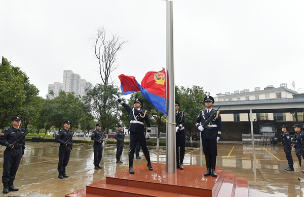 警旗所指,心之所向。上午9時,參加活動的隊伍整齊列隊,英姿颯爽。儀仗隊員精神抖擻、步履鏗鏘,護送警旗入場,全體人員面向警旗莊重敬禮。在雄壯、嘹亮的《中國人民警察警歌》聲中,鮮艷的警旗冉冉升起,迎風飄揚,現(xiàn)場人員心潮澎湃,意氣風發(fā)。