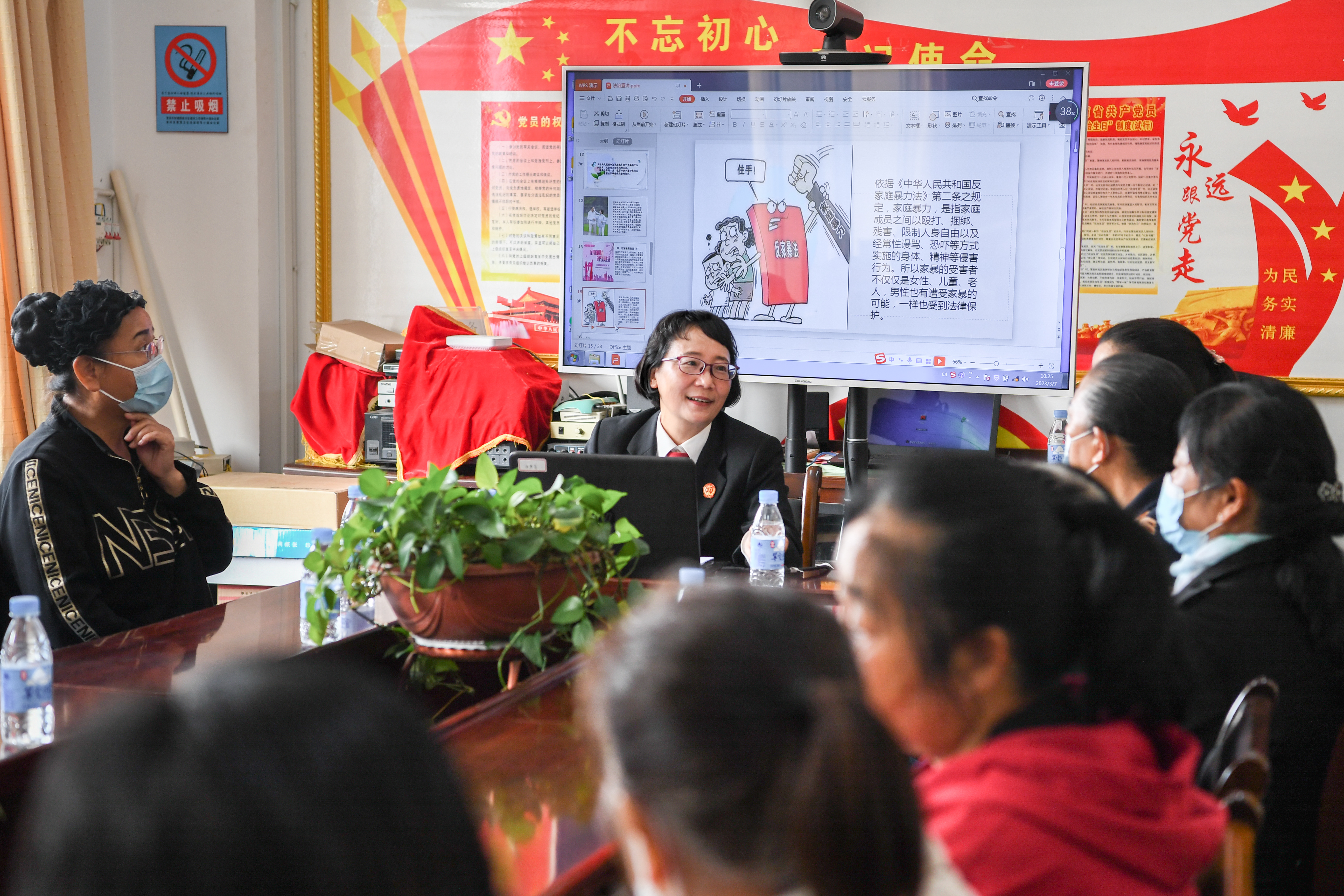 對于家庭矛盾、鄰里糾紛這些繁瑣的案件,湯燕萍總是樂于充當(dāng)“和事佬”,苦口婆心,不厭其煩,力爭使矛盾糾紛得到真正化解?!胺ü侔⒁?,我想讀書,不想一個人待在家里……”因父母展開撫養(yǎng)權(quán)爭奪“大戰(zhàn)”而輟學(xué)的留守兒童小陽(化名)向她吐露的心聲時,她看在眼里、急在心頭,了解小陽的情況后,她迅速找到該案的癥結(jié),主動找小陽的父母溝通,從法理講到情理,耐心做思想工作的同時,并積極與相關(guān)部門溝通協(xié)調(diào)小陽的教育問題,最終小陽撫養(yǎng)問題達(dá)成和解,如愿入學(xué)。