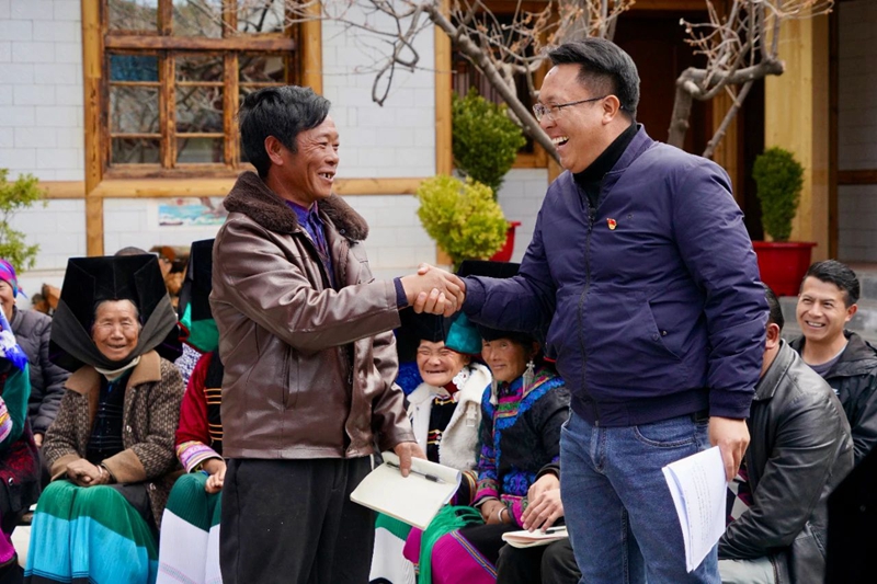云南省麗江市寧蒗彝族自治縣,這位80后的彝族小伙,剛一下車,便來到了戰(zhàn)河鎮(zhèn)戰(zhàn)河村委會,奔赴田間地頭,為當(dāng)?shù)匕傩諑砹藷釟怛v騰的兩會精神。