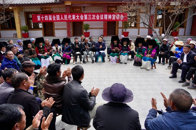 (全國人大代表魯權(quán)向父老鄉(xiāng)親宣講兩會精神)