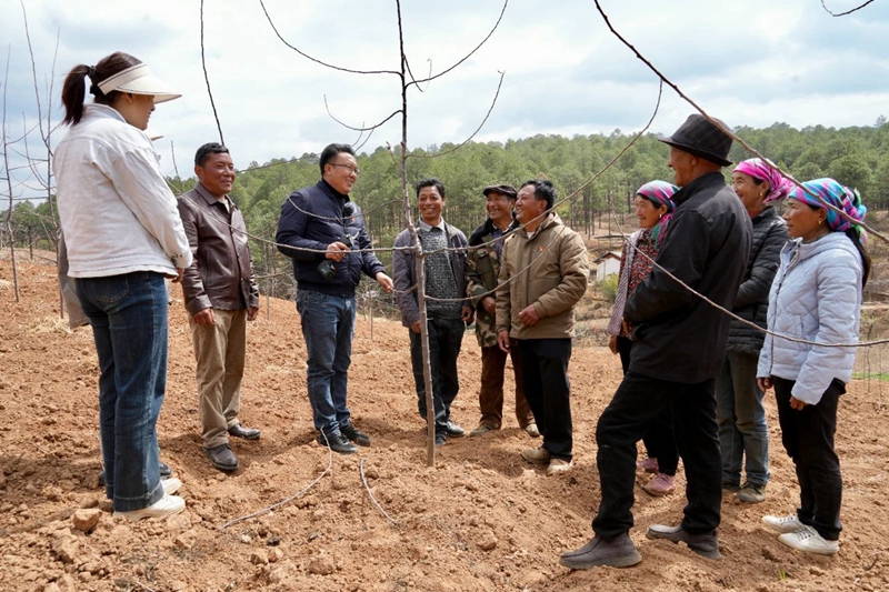 據(jù)悉,2023年,在戰(zhàn)河鎮(zhèn)黨委政府的產(chǎn)業(yè)發(fā)展規(guī)劃中,蘋果種植被確定為重點(diǎn)方向,為了更好地帶領(lǐng)當(dāng)?shù)赜幸庠傅霓r(nóng)戶加入蘋果種植隊(duì)伍,魯權(quán)和團(tuán)隊(duì)承擔(dān)起了“雙重任務(wù)”,既要負(fù)責(zé)12747畝示范基地的標(biāo)準(zhǔn)化種植,又要為全鎮(zhèn)27個(gè)村民小組1506戶果農(nóng)提供免費(fèi)的苗木和全程技術(shù)指導(dǎo)。