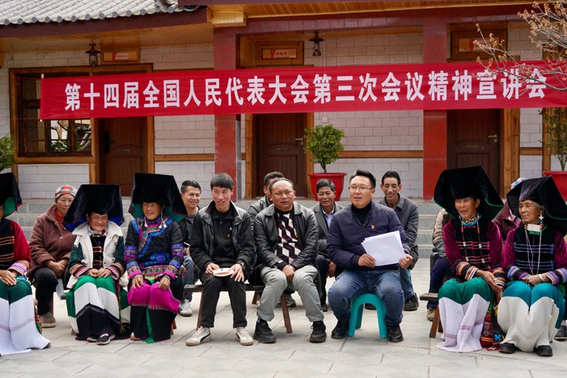 戰(zhàn)河村委會是彝族村,魯權(quán)在宣講中,更多的時(shí)候使用了大家熟悉的彝語,把自己在全國兩會上的所見、所聞、所感,仔仔細(xì)細(xì)地講給父老鄉(xiāng)親。他深入淺出地解讀了全國兩會精神和政府工作報(bào)告的要點(diǎn),那些國家出臺的惠民惠農(nóng)新政策,從他嘴里說出來,通俗易懂。他還分享了自己在會議期間的發(fā)言、參會的體會。