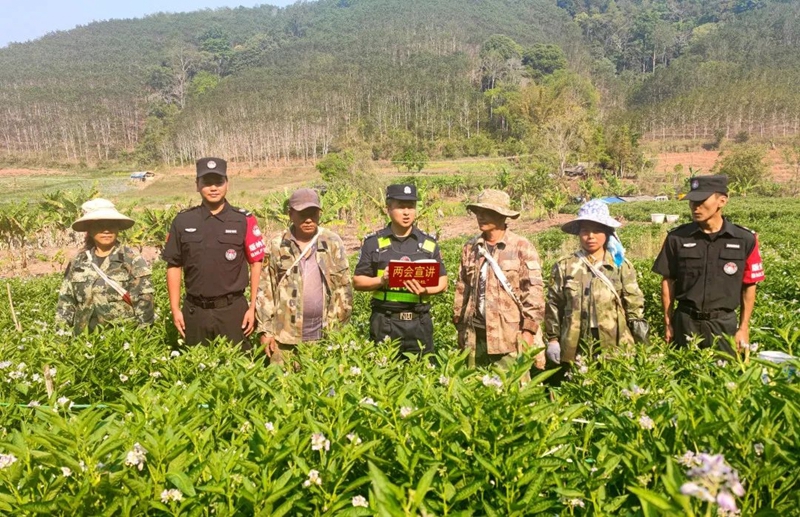 “社區(qū)警?!边吘彻仓侮?duì),深入轄區(qū)村寨開展“兩會精神進(jìn)邊寨”活動(dòng),用“接地氣、冒熱氣”的宣講方式,將“田埂課堂”搬到春耕現(xiàn)場,用“漢傣哈”三語解讀2025年全國兩會《政府工作報(bào)告》。通過發(fā)放宣傳資料、現(xiàn)場講解、“兩會金句接龍”等方式,幫助村民們更好地領(lǐng)會兩會精神的核心要義,讓黨的政策春風(fēng)化雨般浸潤邊境村寨,筑牢邊境黨群“連心橋”。