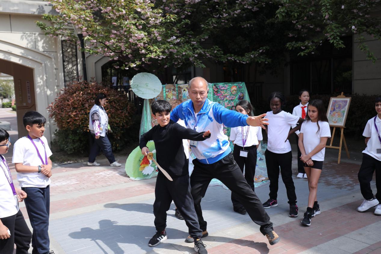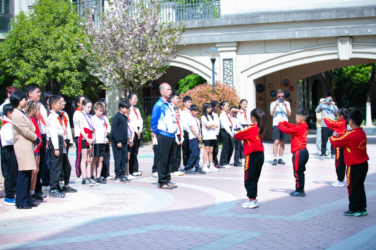 代表團在紅星路小學英文講解員的引導(dǎo)下開啟校園探訪之旅。步入校區(qū)生態(tài)星農(nóng)場,代表團對學生們親手種植的蔬菜贊嘆不已;移步彩磚廣場,六名中國功夫少年以行云流水的武術(shù)表演震撼全場,長刀揮舞間盡顯中華武術(shù)的剛?cè)岵?。英國師生在武術(shù)教練指導(dǎo)下體驗“弓步刺刀”“纏頭裹腦”等招式,并學習傳統(tǒng)抱拳禮,親身感受中國武術(shù)的禮儀與精神。隨后的科技長廊參觀中,航天知識展區(qū)以圖文與模型結(jié)合的形式,向英國友人展現(xiàn)了中國航天事業(yè)的飛速發(fā)展,激發(fā)了兩國學生對科學探索的熱情。