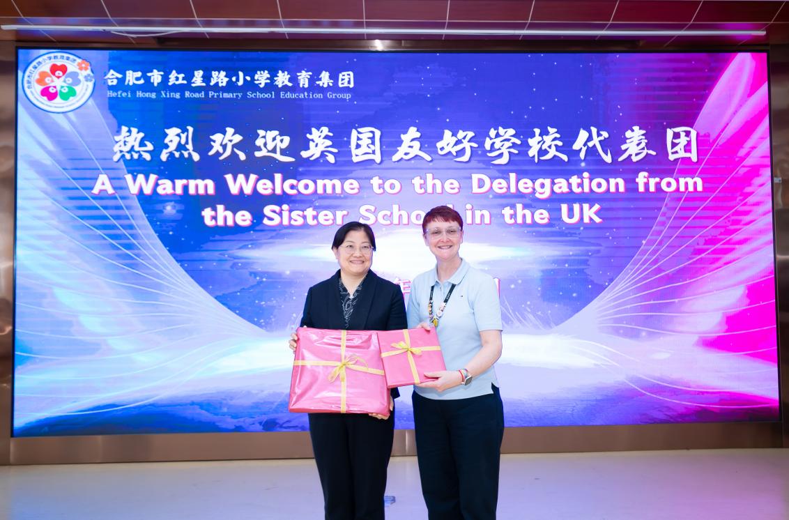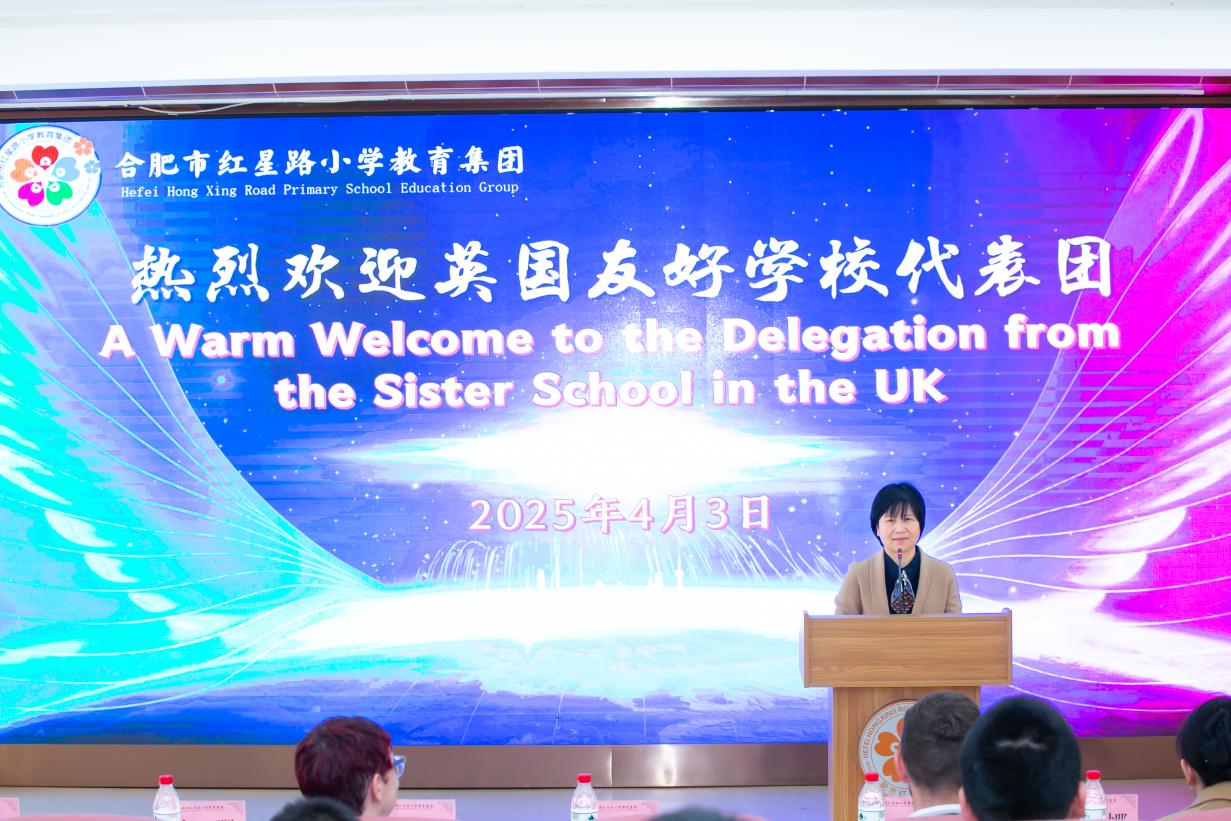 在國際部校區(qū)報告廳,中英師生齊聚一堂,合肥市紅星路小學黨總支書記方業(yè)菊代表學校向遠道而來的朋友表示熱烈歡迎,并提出“此次交流不僅是兩校的聯(lián)誼,更是兩城、兩國之間的盛會?!彪S即,合肥市紅星路小學校長唐玥宣布“伙伴結(jié)對”名單,開啟下午在校交流序幕。同時,英國格里夫菲爾德小學校長Emma也向紅星路小學發(fā)出誠摯的回訪邀請。
