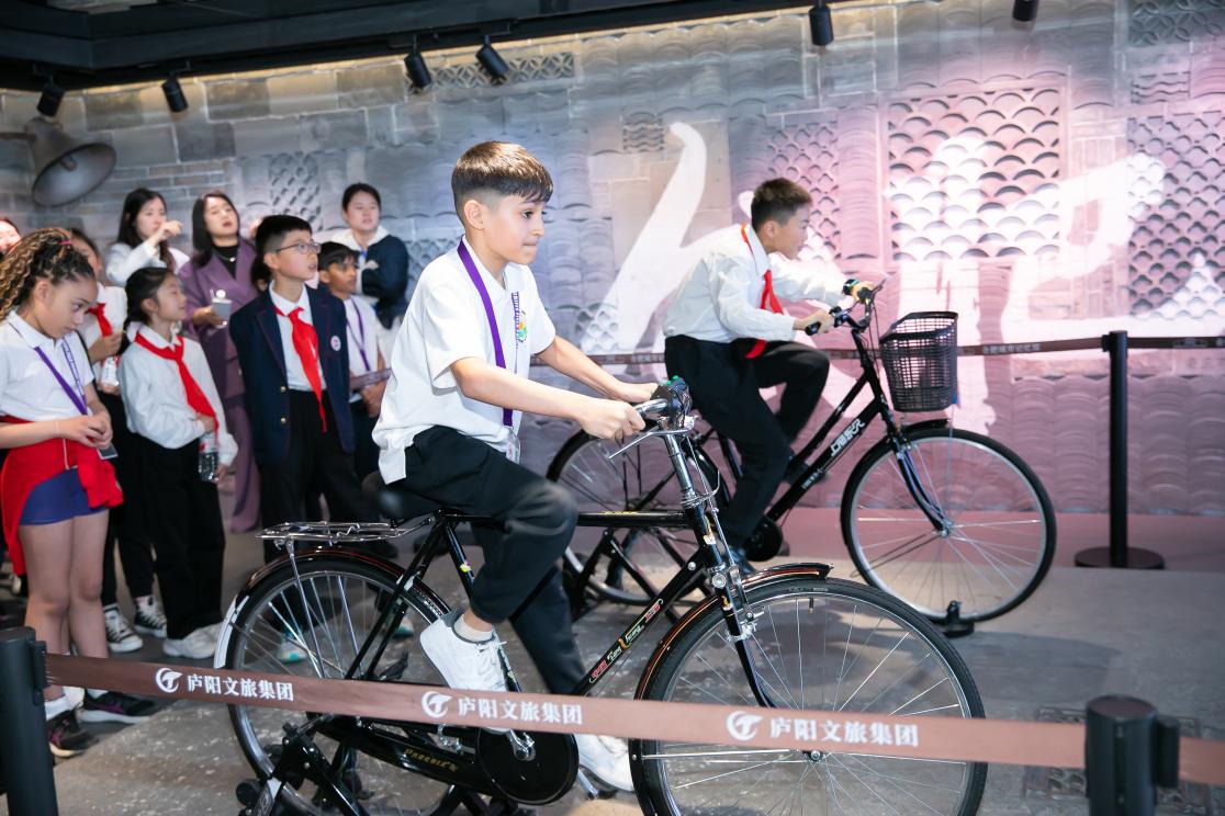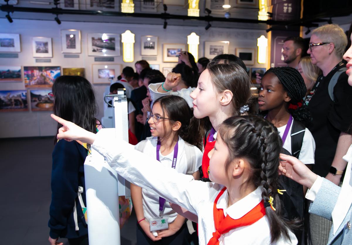 在合肥城市記憶館,代表團師生一起穿越“時空”尋訪獨屬于合肥的城市記憶。一幅幅照片、一段段視頻、一件件實物展示著合肥日新月異的變化,講述著合肥的發(fā)展變遷,場館內(nèi)不僅文化內(nèi)涵豐富,還科技感十足,代表團的孩子們通過沉浸式光影技術(shù)、數(shù)字化交互系統(tǒng)、VR視覺等技術(shù),直觀地了解著合肥發(fā)展的面貌。他們還在場館內(nèi)體驗了設(shè)計汽車的快樂,感受了古廬州的房屋設(shè)計,乘坐了舊火車車廂,并與紅星學子進行了模擬自行車比賽。同時,在紅星學子的幫助下,代表團的英國學生均設(shè)計出了自己的AI虛擬形象,并興奮地朝畫面中的虛擬人物打招呼,感受合肥科技的魅力。