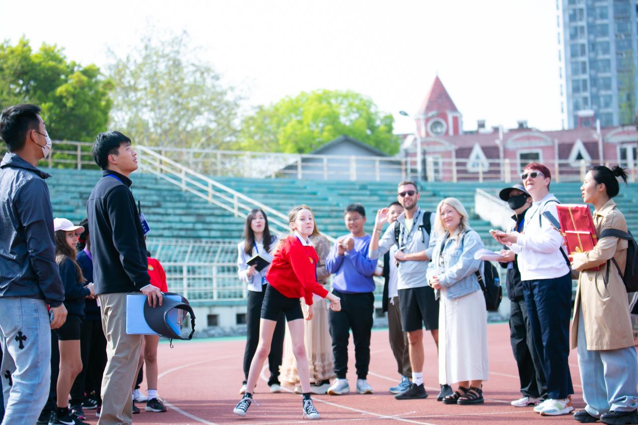 4月3日上午,代表團一行來到省體育館,觀看正在舉行的4~6年級校運動會,代表團的老師和同學們體驗了扔壘球、實心球,并和紅星學子在60米賽跑中同臺競技,在運動中增進了中外文化的交流,展現(xiàn)了多元文化融合的青春活力。運動會賽事體驗結(jié)束后,代表團的每位同學都獲得了一張印有“紅星”?;盏倪\動會參與證書,而這張證書也將成為他們紅星之旅的第一份禮物。
