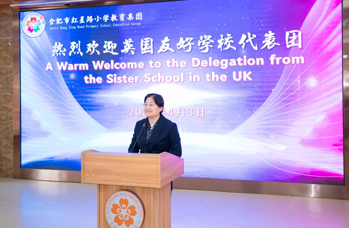 春光為禮,花開為信,最美人間四月天。4月3日上午,由英國格里夫菲爾德小學4名教師和12名學生組成的英國德比市教育代表團來到合肥市紅星路小學教育集團開展交流訪問活動,代表團由艾瑪校長帶隊。合肥市紅星路小學黨總支書記方業(yè)菊,黨總支副書記、校長唐玥,副校長葉紅海熱情接待了代表團一行。合肥市教育局外事辦主任張媛、廬陽區(qū)教體局辦公室主任晉娜參與陪同。