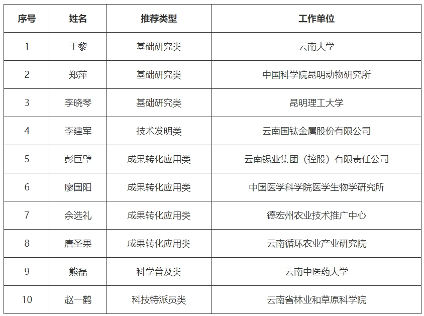 4月7日,云南省科技廳發(fā)布了2025年“云嶺最美科技人”名單,包括云南大學(xué)于黎、云南中醫(yī)藥大學(xué)熊磊、德宏州農(nóng)業(yè)技術(shù)推廣中心余選禮等10人入選。