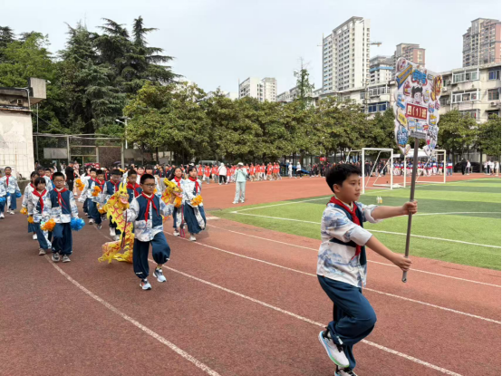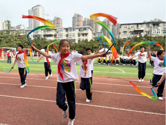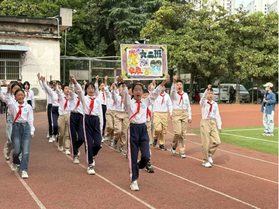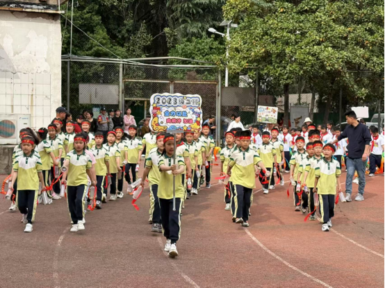 開幕式上,各班同學身著整齊服裝,組成獨具特色的方陣依次入場。有的班級揮舞著鮮艷的紅旗,表達對祖國的熱愛;有的班級頭戴卡通頭飾,活潑可愛,盡顯童真童趣。隨后,活力四射的熱身舞表演點燃現(xiàn)場氣氛,同學們動感的舞姿、自信的笑容,展現(xiàn)出積極向上的精神風貌。