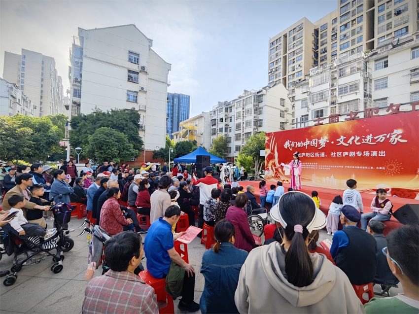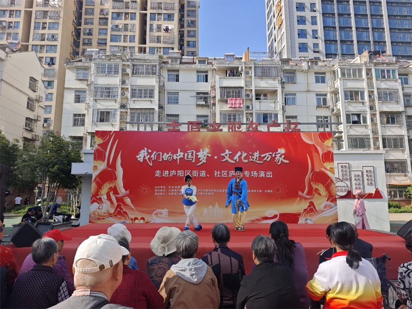 “咚咚鏘——”悠揚的戲鼓聲在社區(qū)里蕩漾,水袖輕揚的戲曲演員在群眾身邊亮相,宛轉悠揚的廬劇唱腔與觀眾的叫好聲交織共鳴......4月15日,“我們的中國夢——文化進萬家”廬劇專場走進廬陽區(qū)亳州路街道暢園新村志愿服務廣場,為周邊群眾奉獻一場精彩絕倫的戲曲盛宴。