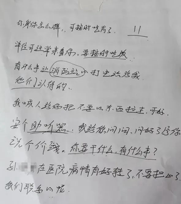 一張普通的白紙上寫有“記得按時(shí)吃藥”“有事讓他們聯(lián)系我”……這些帶有溫度的囑托,究竟是誰(shuí)寫下的?