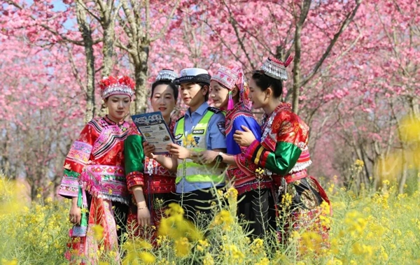 山深未必得春遲,處處山櫻花壓枝。四月的百花爭艷,怎能少得了磨盤山那春意悠然的景象。新平警方每逢春日賞花季,都會走進山中,攜手當?shù)厣贁?shù)民族一起開展普法宣傳、巡邏執(zhí)勤,攜手守護好這片漫漫花海。