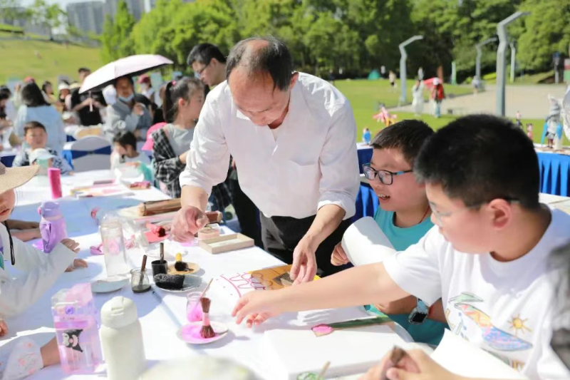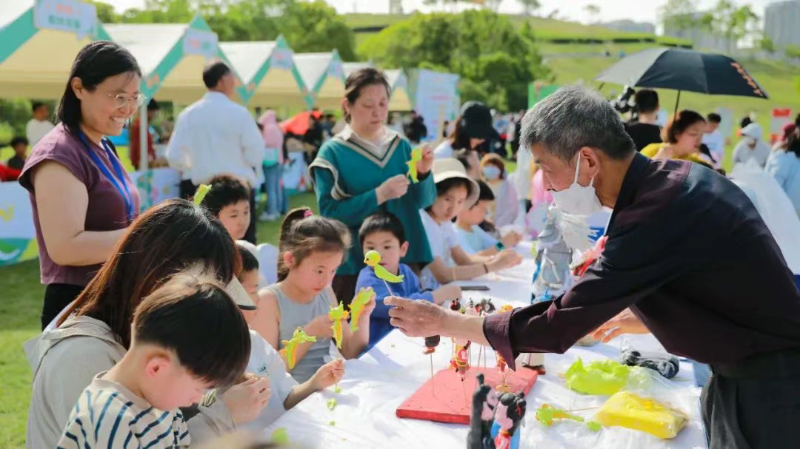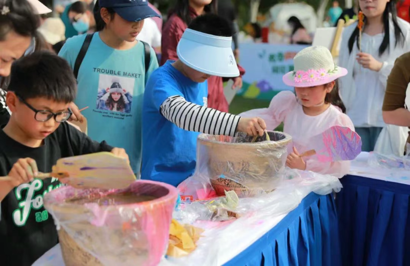 活動(dòng)現(xiàn)場(chǎng),書(shū)頁(yè)和花藝融合,書(shū)香與春意交織,吸引眾多市民游客駐足打卡。文創(chuàng)市集區(qū)域,匯集了一眾文創(chuàng)、圖書(shū)品牌,“閱讀盲盒”攤位不時(shí)有幸運(yùn)讀者拆開(kāi)春日閱讀驚喜。非遺體驗(yàn)區(qū)特邀廬陽(yáng)泥塑、廬州木版水印、廬州糖畫(huà)、殷氏字畫(huà)、馬派皮影、廬州玉石雕刻技藝等非遺代表性傳承人現(xiàn)場(chǎng)演示。市民游客在大飽眼福的同時(shí),還參與到泥塑、廬州木版水印、漆扇等豐富多彩的互動(dòng)體驗(yàn)中,近距離體驗(yàn)書(shū)香廬陽(yáng)的魅力。