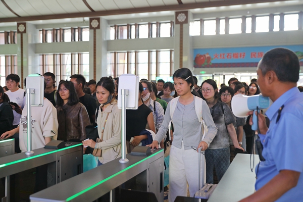 為進(jìn)一步提升旅客出行便捷度,國鐵昆明局在昆明、大理、西雙版納、紅河等地級(jí)市及以上城市的15個(gè)主要客運(yùn)車站的驗(yàn)證、安檢、檢票等處設(shè)置了綠色通道,強(qiáng)化高峰時(shí)段、重點(diǎn)部位的防護(hù)引導(dǎo),為臨近開車前的急客及老幼病殘?jiān)械忍厥饴每吞峁﹥?yōu)先服務(wù)。在昆明、昆明南、大理等車站安檢口為旅客提供禁止隨身攜帶物品快件托運(yùn)服務(wù),全力滿足了旅客多樣化的出行需求。(何思遠(yuǎn)、楊永全、陳婷/文、楊紫軒/圖)